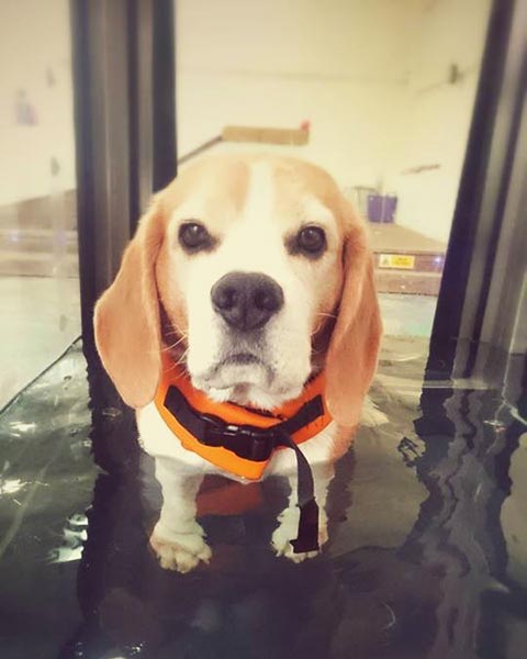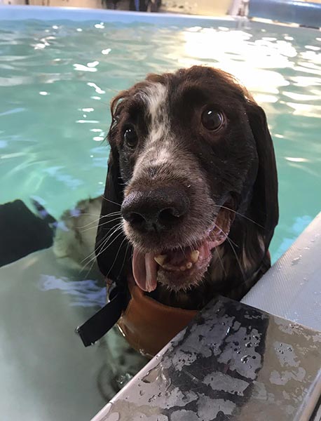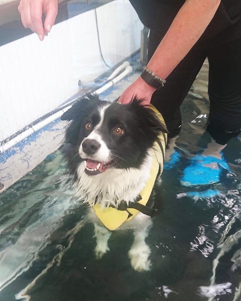 "Barney our beloved WCS was unfortunate enough to be born with AMS and only given a very short time to live once he was diagnosed. Much to our delight and with lots of hard work he thrived and even went on to have a career in agility, reaching the dizzy heights of grade 5. However, in 2016 due to AMS HE broke his right foot and the repair operation dramatically reactivated the symptoms of his AMS, with the sad outcome of amputation of his right hind leg. Enter Highwood Canine Hydrotherapy in December 2016. Their expertise, support and treatment gave Barney his balance back, helped him to work the correct muscles to aid his recovery and reignited his zest for life. He absolutely adores his sessions and 2+ years on he still attends twice a month so that the lovely therapists can constantly assess him and he would go there every day if we'd give him a lift! We're very proud that Barney is the oldest surviving WCS diagnosed with AMS in the UK (9 in March 2019) and contributed to the DNA test for diagnosis available too."